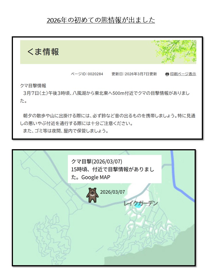 2026年の初めての熊情報が出ました